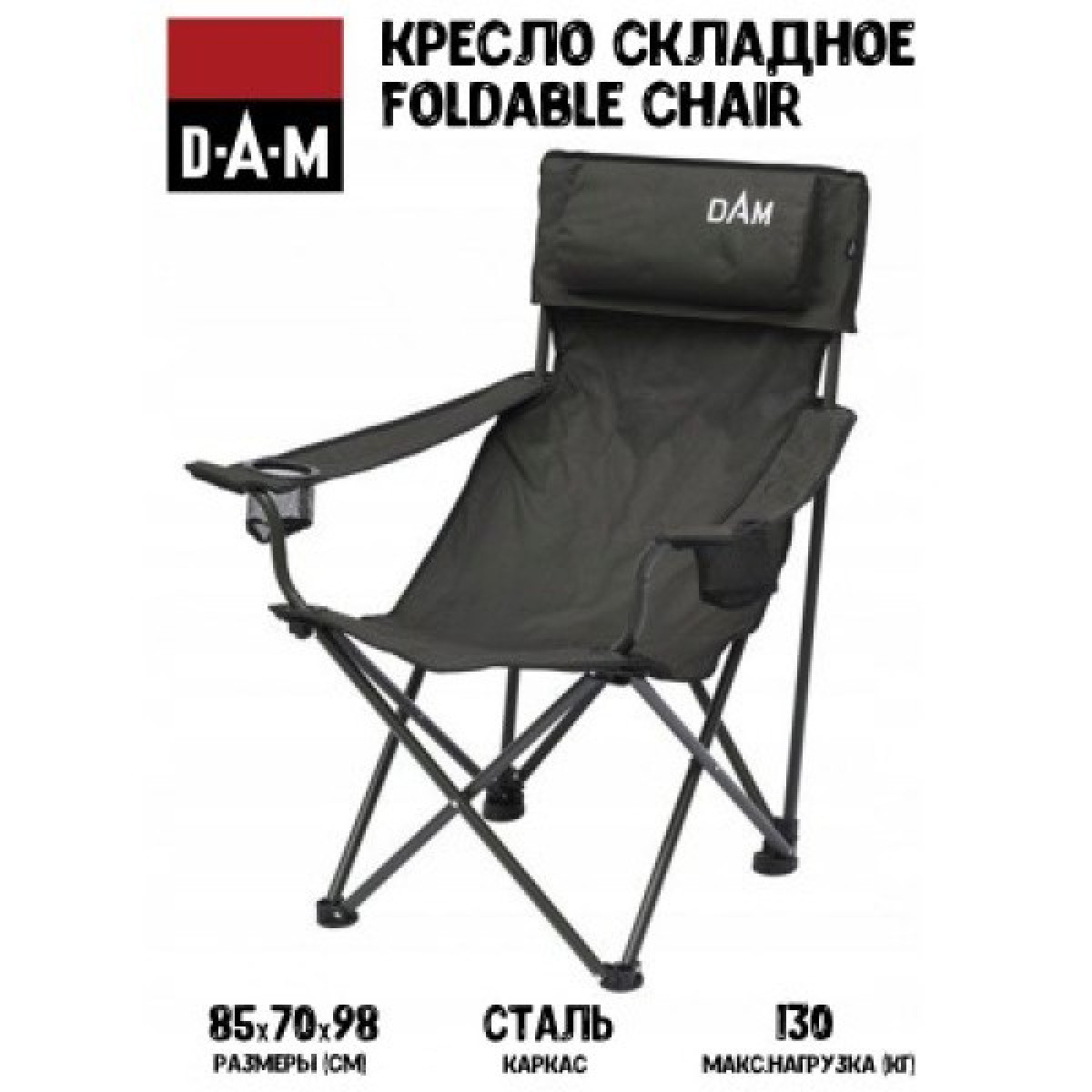 Кресло складное DAM Foldable Chair with Bottle Holder, 4,0kg Steel, max,130kg, Pillow, +Transp, Bag