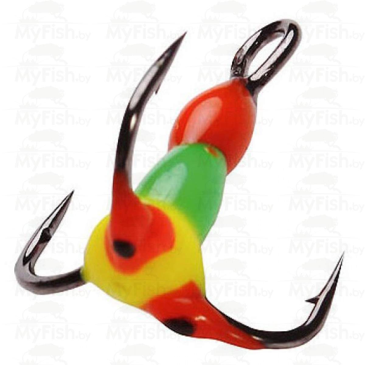 Крючок-тройник для приманок Lucky John SCANDI, с цветной каплей, расцветка RGY - используется для комплектации балансиров и вертикальных блёсен.