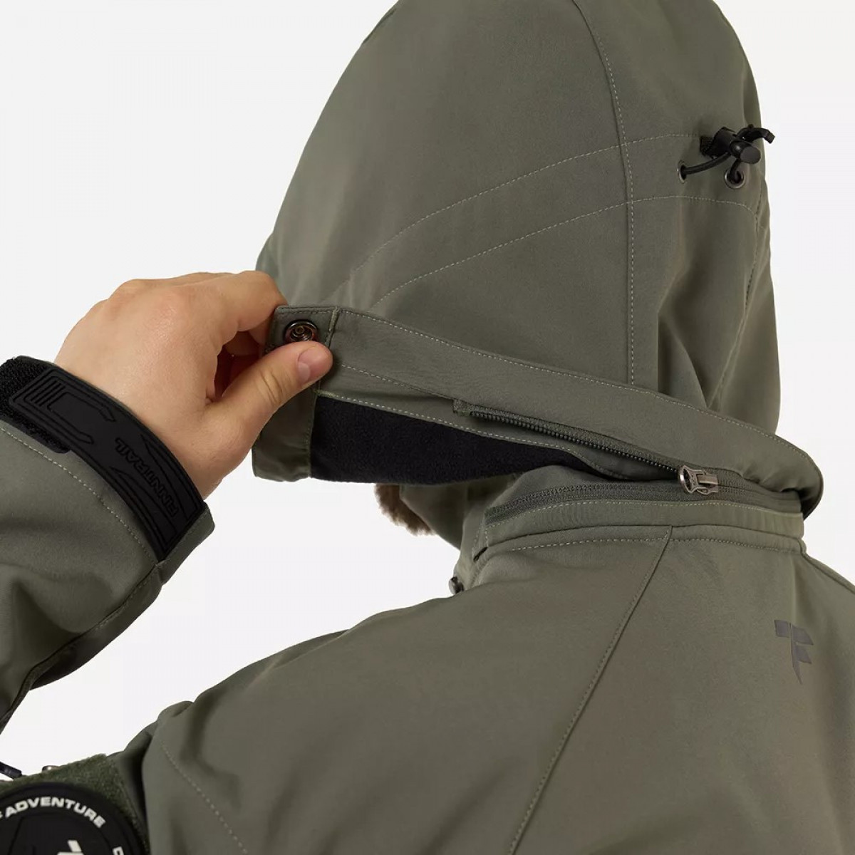 - Трёхслойный материал SoftShell с мембраной и внутренним слоем из микрофлиса сохраняет тепло, отводит излишки пара от тела, не пропускает воду и ветер внутрь.