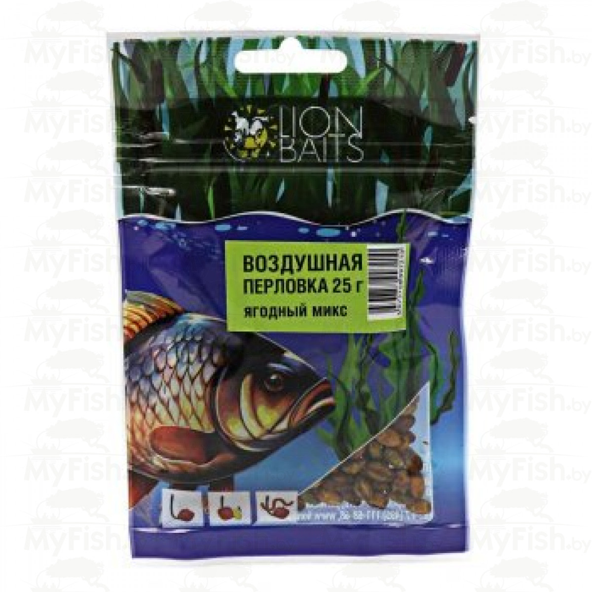 Воздушная перловка – это натуральная насадка для рыболовной ловли, которая прошла процесс вулканизации, и в результате этого термического процесса, зерна перловки приобрели вспененную структуру, увеличились в объеме порядка в 2-2,5 раза. Зерна перловки имеют мягкую структуру, легко нанизываются на крючок, ароматизированы и подкрашены, что создает дополнительное привлечение для рыбы на фоне кормового пятна в местах ловли. Воздушная насадка устойчива на крючке, выдерживает силовые забросы, атаки мелкой рыбы и сильное течение воды.