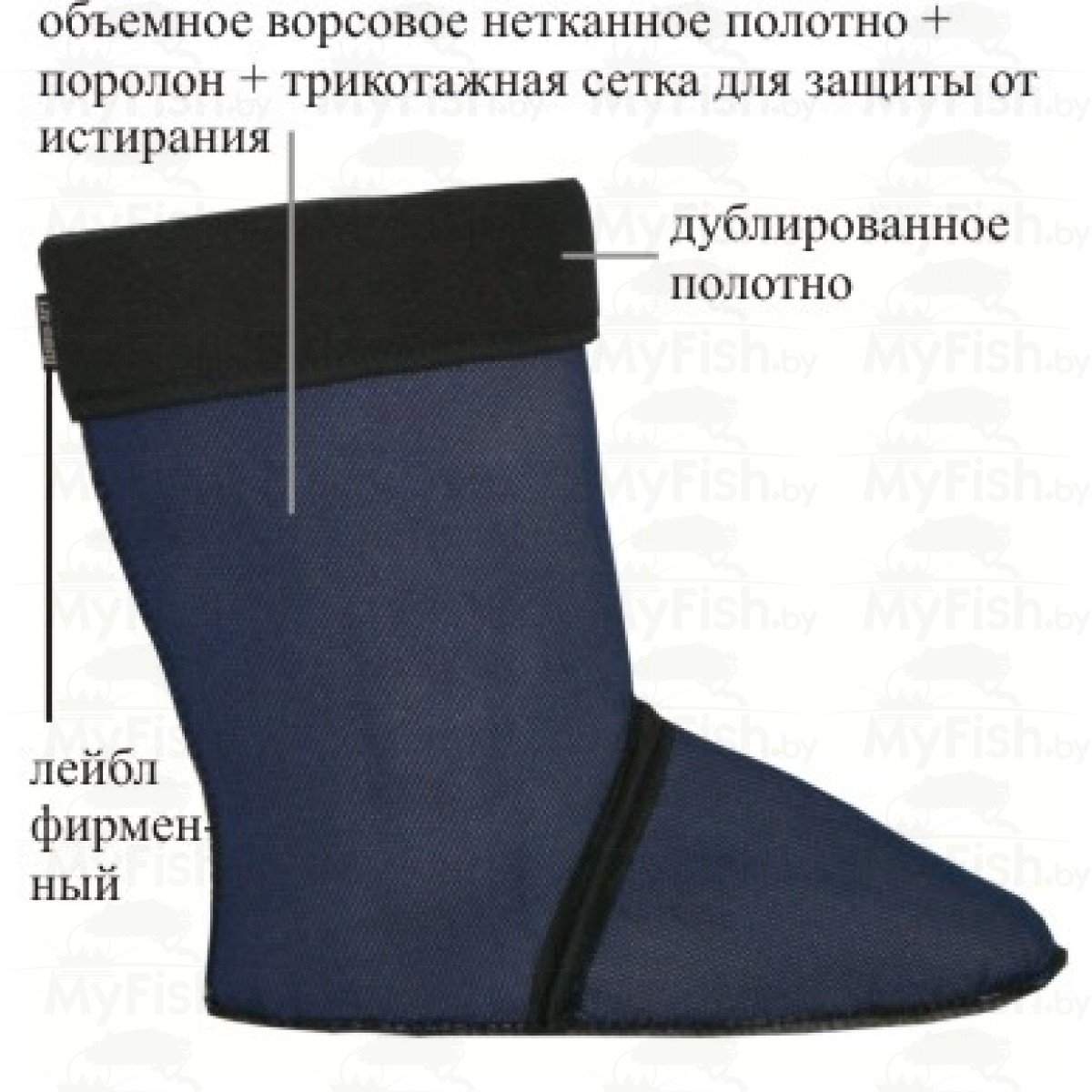 Данные сапоги комплектуются вкладным утеплителем, который легко вставляется и вынимается из обуви. Утеплитель сделан из нетканого полотна, изготовленный из высококачественного полиэфирного волокна, сдублированным с поролоном и специальной сеткой. Утеплитель мягкий, теплый, имеет эстетичный вид, не аллергенный, обладает хорошими физико-механическими свойствами, устойчив к истиранию, растяжениям. Утеплитель обладает хорошей воздухопроницаемостью, комфортностью, сохраняет тепло, создает надежный барьер проникновению холода снаружи. Сушится при комнатной температуре.