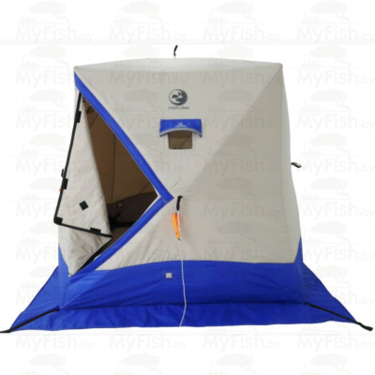 Палатка выполнена в светлых тонах и имеет светоотражающие элементы по периметру, что позволяет увидеть палатку в ночное время. На наружной юбке имеются места крепления ко льду.